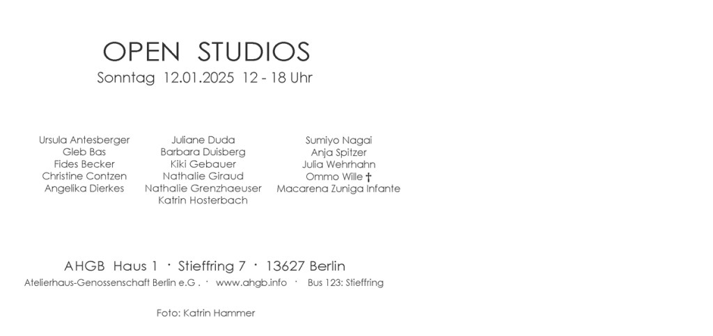 Kategorien Allgemein AHGB Haus 1 – OPEN STUDIOS 2025 Post author Von AHGB Post date 9. Januar 2025 ← AHGB Haus 1 – OPEN SPACES 2024